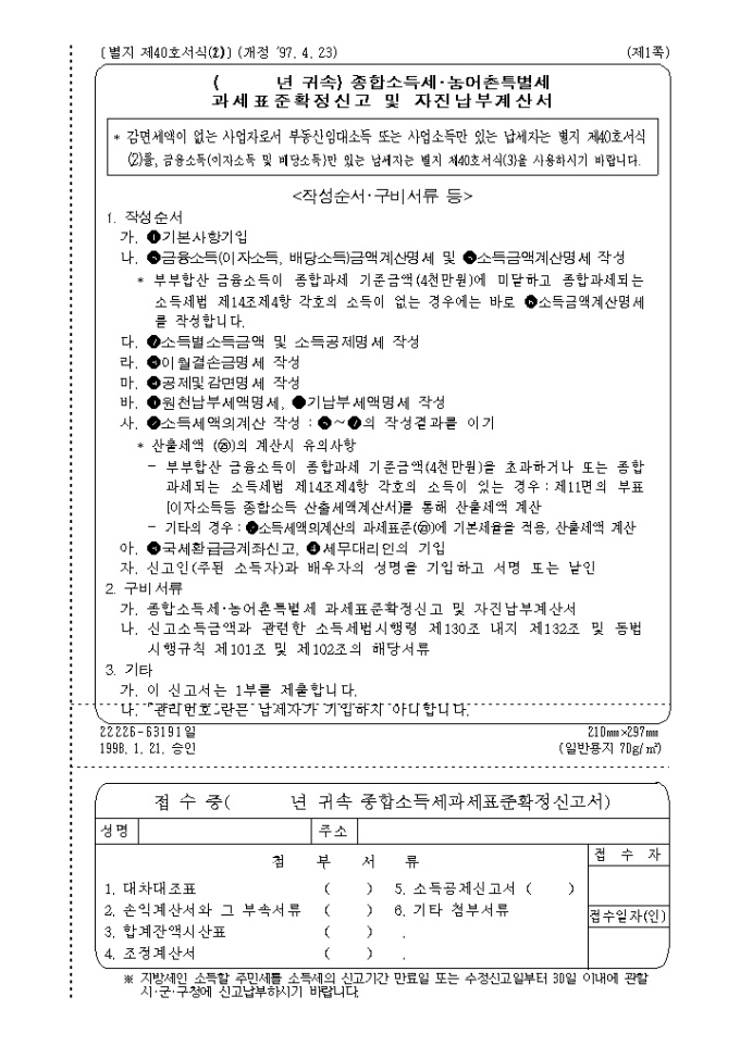 View 종합소득세 과세표준확정신고 Pictures. 소득이 종합소득세 신고대상에 해당한다면 반드시 해당 소득에 대해 신고를 해야 하죠. 소득세법 제40호 종합소득세·농어촌특별세 과세표준확정신고 및 납부계산서.