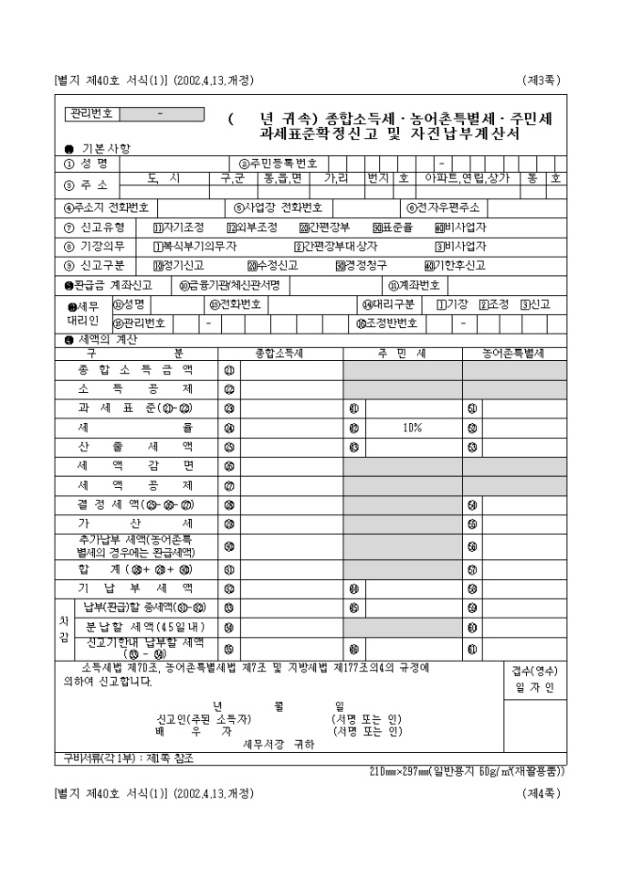 종합소득세지방소득세과세표준확정신고및자진납부계산서(개정 ... from www.bizforms.co.kr 종합소득세액은 사업소득이외에 다양한 소득과 거주자의 다른 소득과 합산되며 소득공제에 따라 달라집니다. 조합원 간 합의는 또 어느 세월에 하나.서울 주요 재건축단지를 중심으로 집값이 급등세를 보이자 오세훈 서울시장이 '속도조절론'을 꺼냈다. '종합소득세'란 지난 1년 간의 소득금액에 대해서 공제를 한 뒤 과세표준을 적용하여 산출된 세액을 말하죠.