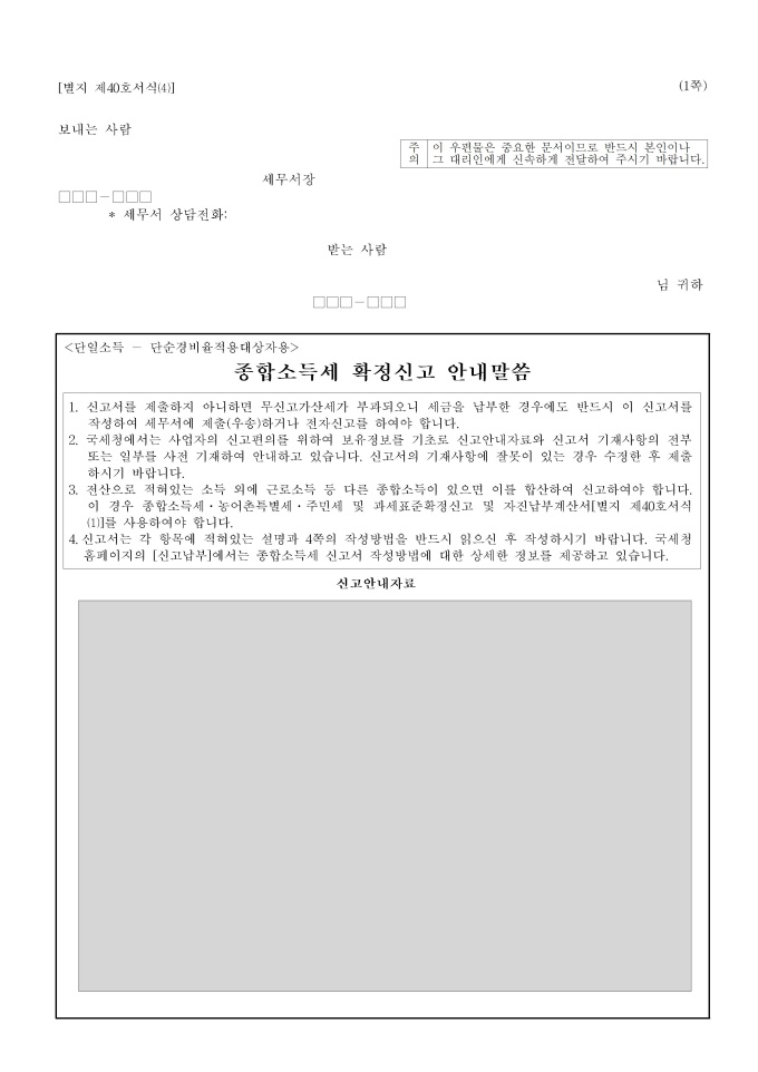 코로나19 고용 안정 지원금 신청 서류 중 하나인 종합소득세 신고서 (종합소득세 과세표준 확정신고 및 납부계산서) 확인 방법과 다운로드 방법에 대하여 안내드립니다.